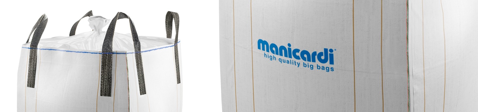 Big bags MANICARDI® conduttivi tipo C, sono progettati per scaricare a terra le cariche elettrostatiche che si potrebbero formare sulle pareti interne del FIBC durante lo scarico e/o il riempimento veloce del materiale. In ambienti di lavoro dove sono presenti atmosfere a rischio esplosione, è fortemente consigliato l’impiego di questa tipologia di sacconi.